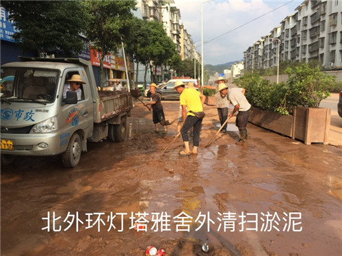 二是上下聯(lián)動,奮力除險,全力保障群眾安全。由于雨量過大,康藏路消防隊門口主干道積水達(dá)70厘米深,道路中斷,公司搶險分隊組織隊員冒雨對排水口進(jìn)行疏通,以最快速度恢復(fù)道路通行;北外環(huán)青鼻山隧道外大量塌方,搶險分隊立即在此處設(shè)置警示標(biāo)識,并調(diào)配裝載機對塌方進(jìn)行清理,確保道路恢復(fù)正常通行。