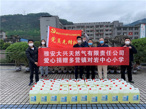 4月4日,城投公司下屬子公司雅安大興天然氣有限責(zé)任公司到多營(yíng)鎮(zhèn)對(duì)巖中心小學(xué)開展愛心捐贈(zèng)活動(dòng),此次活動(dòng)共捐贈(zèng)消毒液50余桶,主要用于校園內(nèi)防疫消殺,確保學(xué)校安全復(fù)學(xué)。