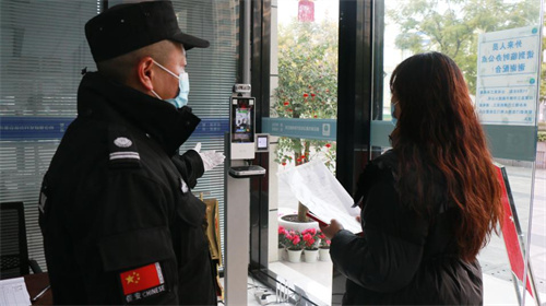 此次演練設(shè)定在上午9點(diǎn),城投公司辦公樓入口,被紅外線體溫儀檢測(cè)出一名體溫異常的辦事人員,且檢查健康碼顯示黃碼。