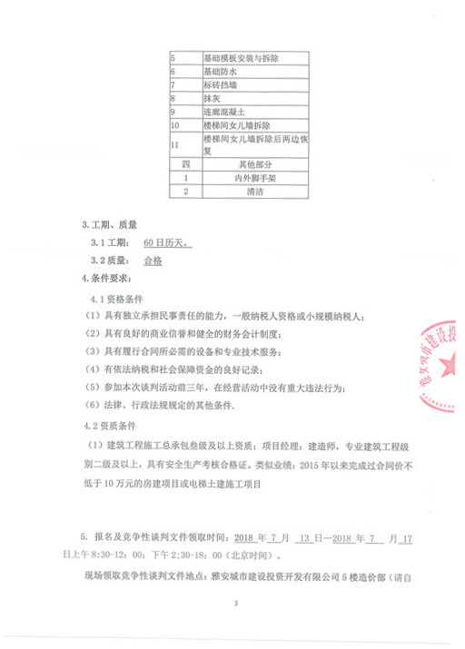 雅安科技苑小區(qū)新增電梯井道、基礎(chǔ)及附屬工程——競爭性談判