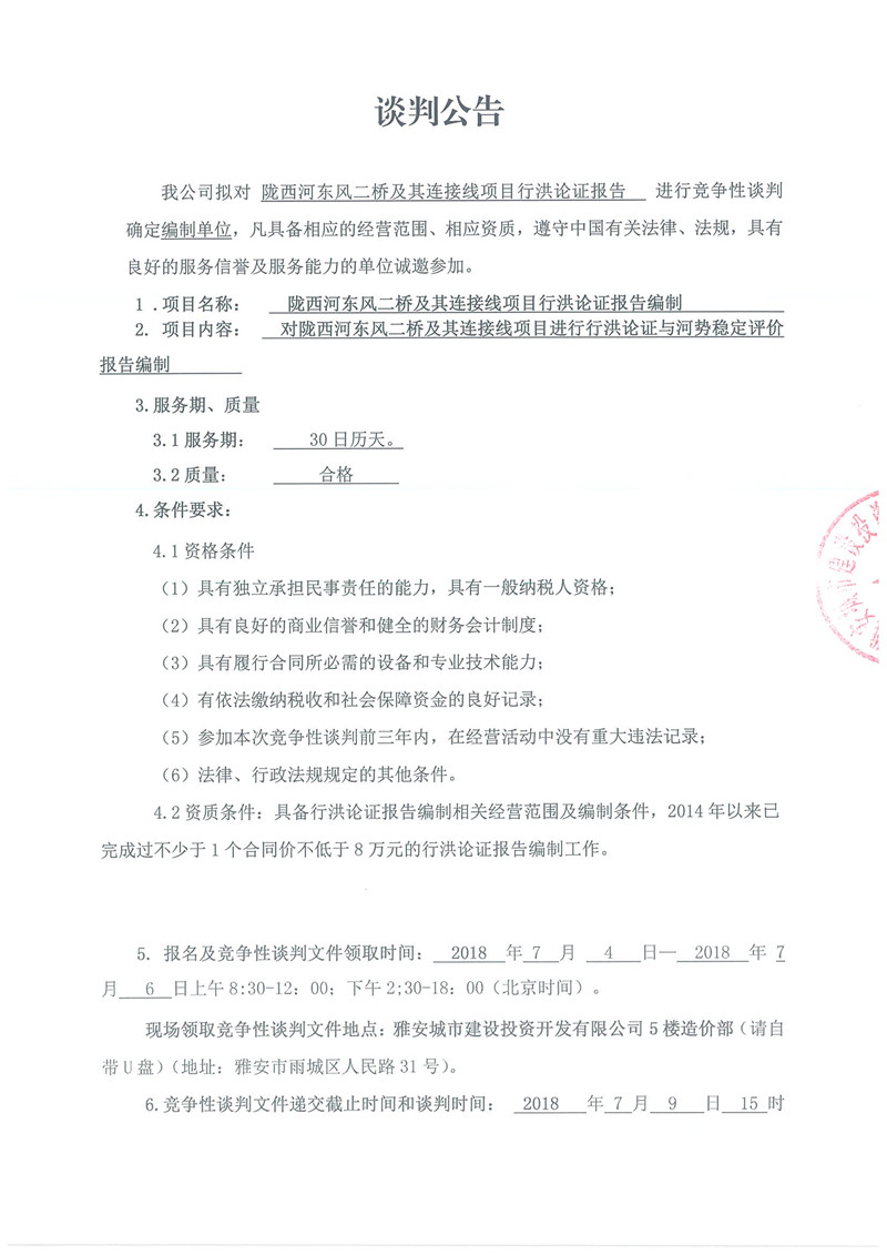 隴西河?xùn)|風(fēng)二橋及其連接線項(xiàng)目行洪論證報(bào)告編制的競爭性談判公告