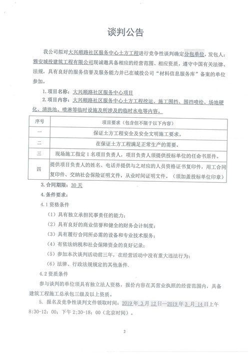 大興順路社區(qū)服務(wù)中心土方工程競(jìng)爭(zhēng)性談判公告