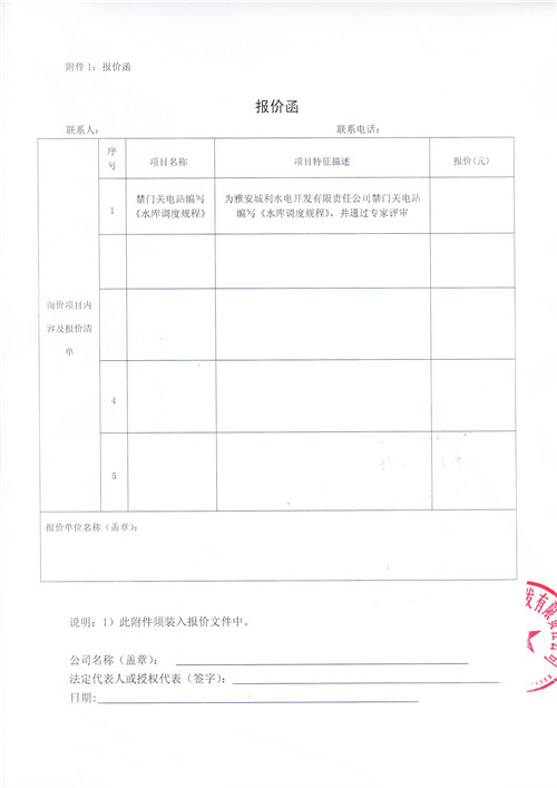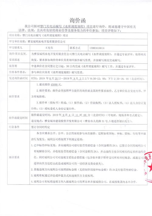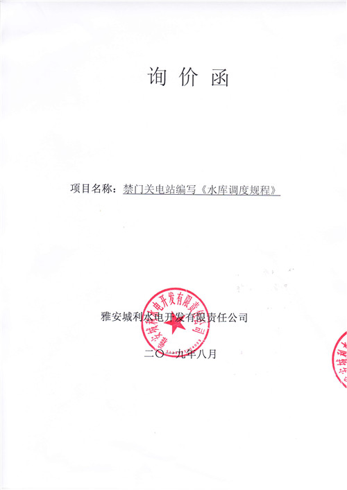 雅安城利水電開發(fā)有限責任公司禁門關電站編寫《水庫調度規(guī)程》競爭性談判公告