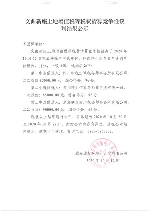 文曲新座土地增值稅等稅費(fèi)清算競(jìng)爭(zhēng)性談判結(jié)果公示