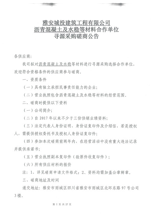 城投建工公司瀝青混凝土及水穩(wěn)等材料合作單位尋源采購(gòu)磋商公告