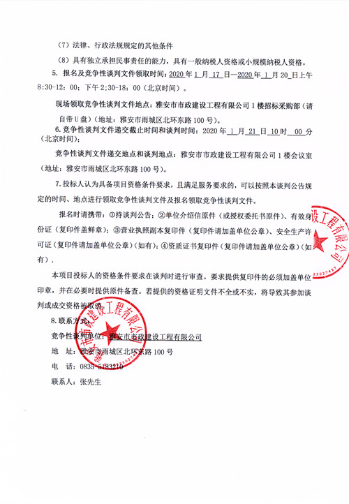 雅安市生活垃圾轉(zhuǎn)運(yùn)體系建設(shè)姚橋垃圾壓縮中轉(zhuǎn)站項(xiàng)目確定鋼筋供貨單位的競爭性談判公告(第二次)