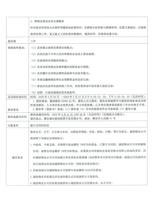 城投物業(yè)公司互聯(lián)網(wǎng)輿情監(jiān)測(cè)服務(wù)采購(gòu)項(xiàng)目詢(xún)價(jià)函