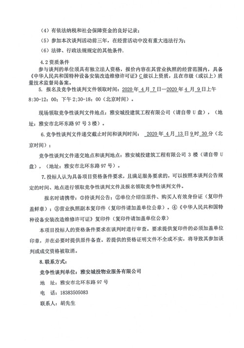 城投物業(yè)公司大興公租房小區(qū)電梯維保服務(wù)項(xiàng)目競(jìng)爭(zhēng)性談判公告