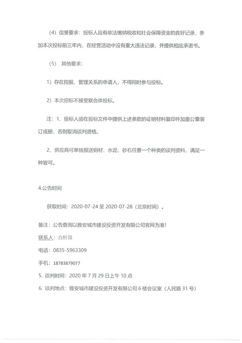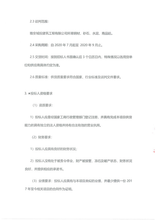 2020年7月-9月城投建筑工程有限公司鋼材、砂石、水泥、商品砼集中采購供應(yīng)商競(jìng)爭(zhēng)性資格談判公告