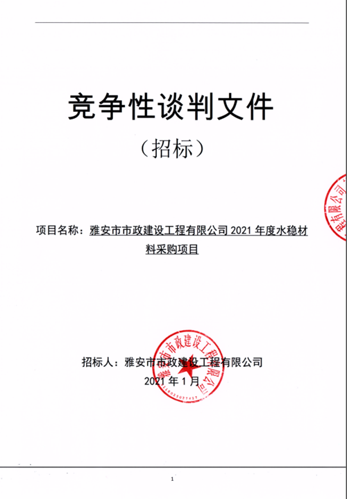 雅安市市政建設(shè)工程有限公司2021年度水穩(wěn)材料采購項(xiàng)目
