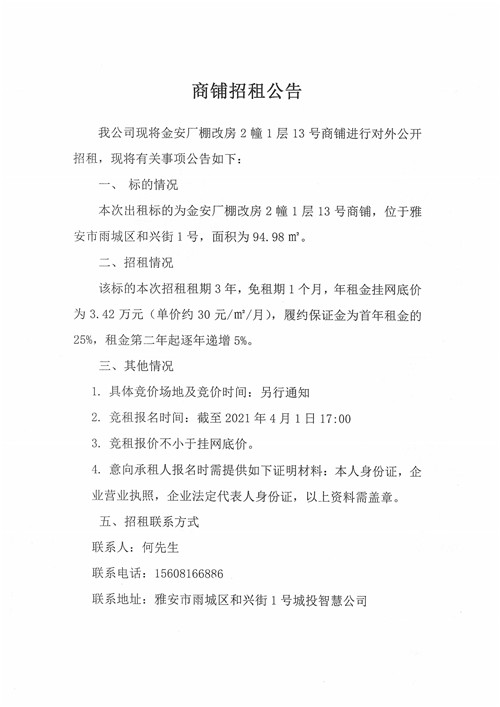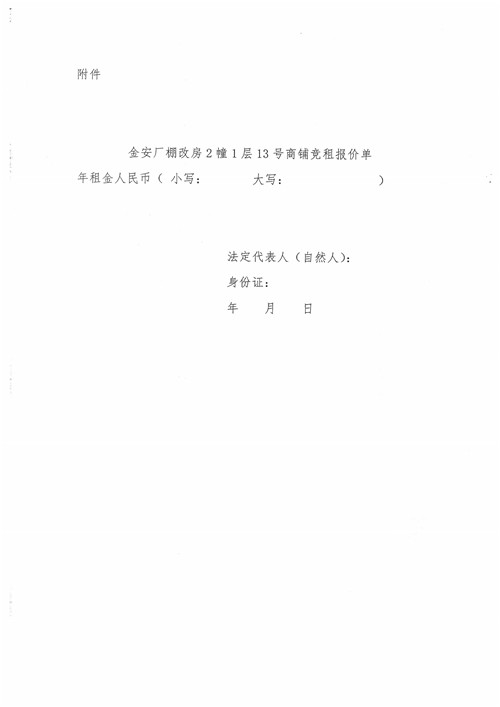 金安廠棚改房2幢1層13號商鋪招租公告