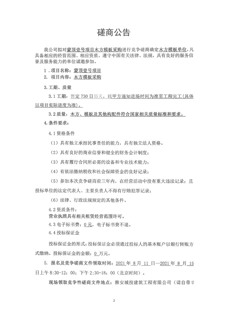城投建工公司蒙頂壹號(hào)項(xiàng)目木方模板采購競爭磋商公告