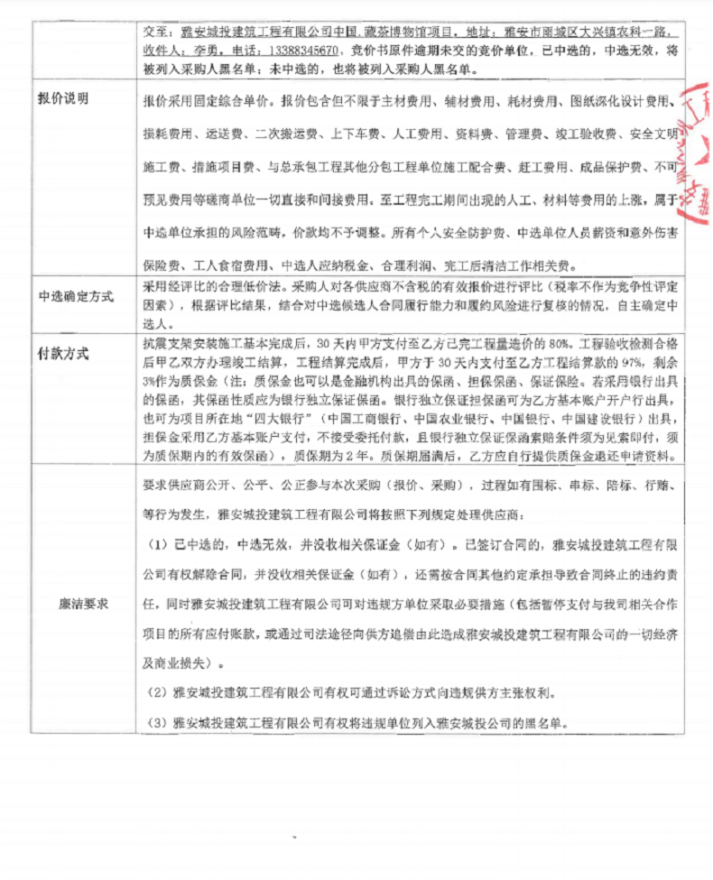 中國藏茶博物館布展與裝飾項目抗震支架材料安裝競價公告