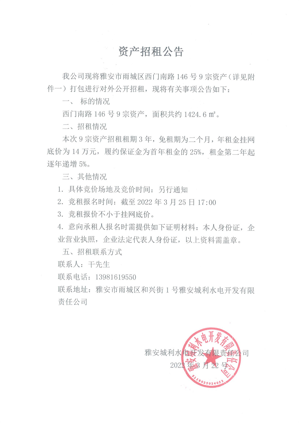 資產招租公告