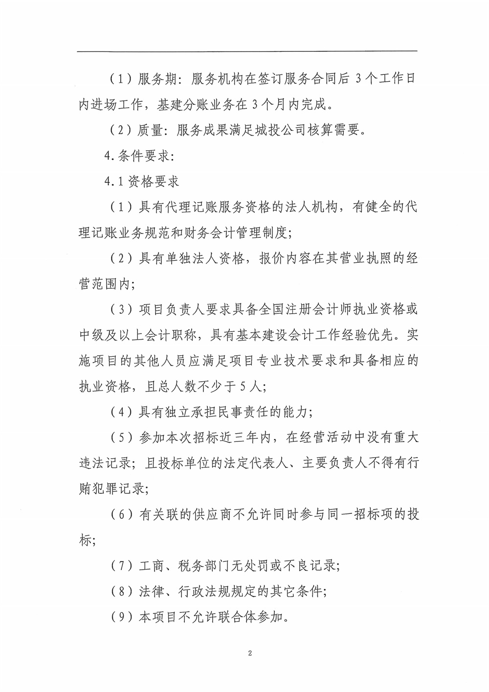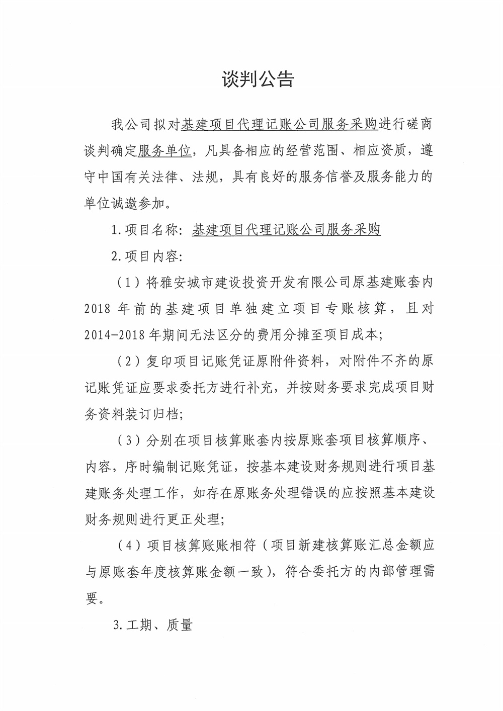 城投公司基建項(xiàng)目代理記賬公司服務(wù)采購磋商談判公告