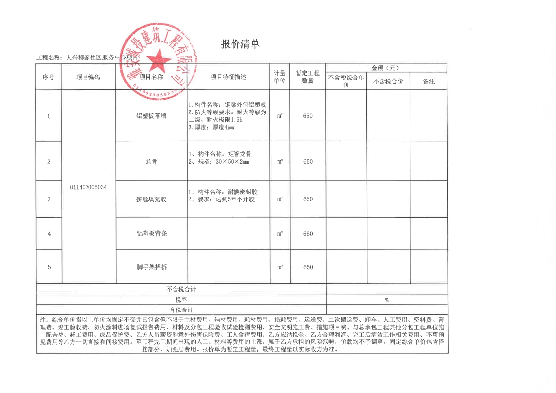 大興穆家社區(qū)服務(wù)中心項(xiàng)目鋼結(jié)構(gòu)外包鋁塑板競(jìng)價(jià)公告(第二次)