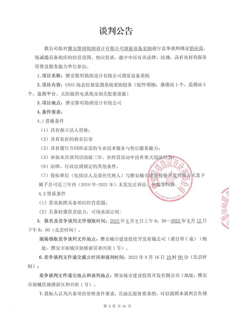雅安黎明勘測(cè)設(shè)計(jì)有限公司測(cè)量設(shè)備采購(gòu)競(jìng)爭(zhēng)談判文件