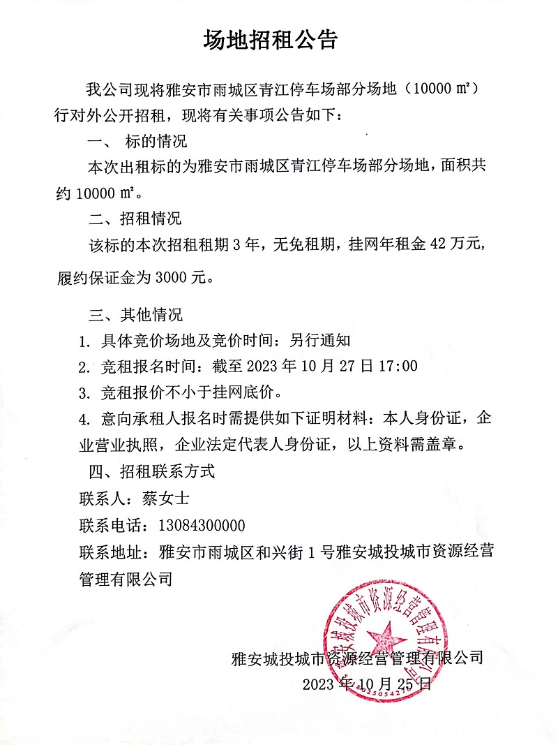 雅安市雨城區(qū)青江停車場(chǎng)部分場(chǎng)地招租公告