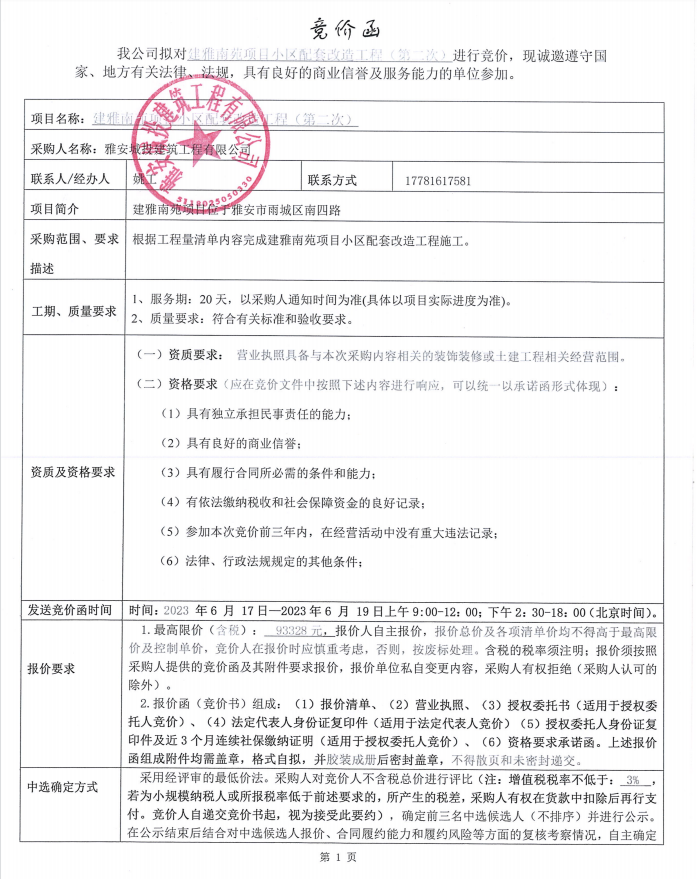 建雅南苑項(xiàng)目小區(qū)配套改造工程(第二次)競價(jià)公告