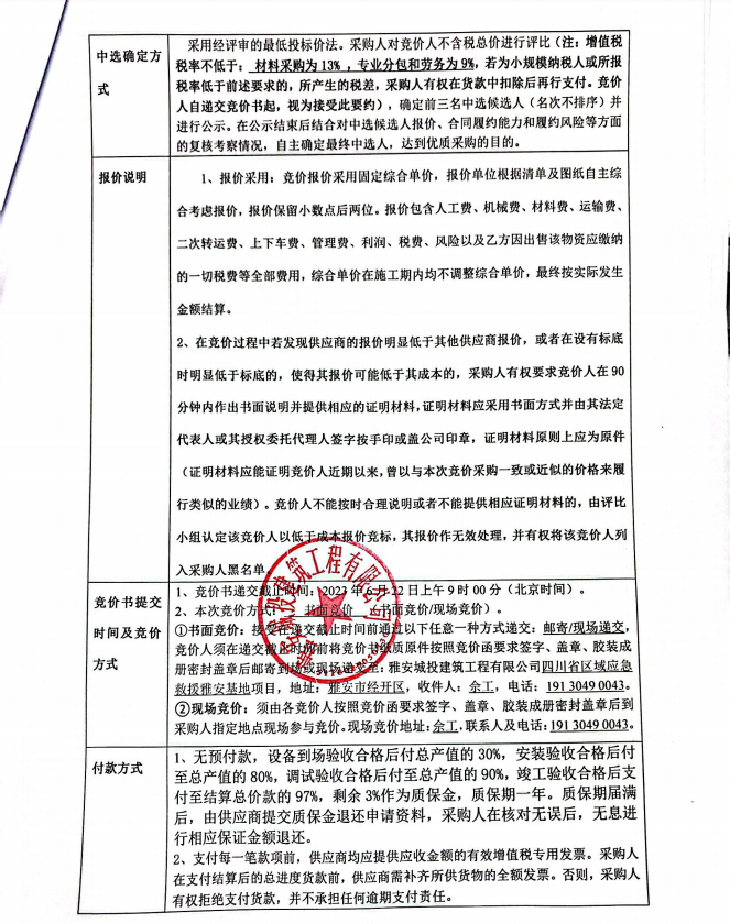 四川省區(qū)域應(yīng)急救援雅安基地項目熱水系統(tǒng)采購安裝競價公告
