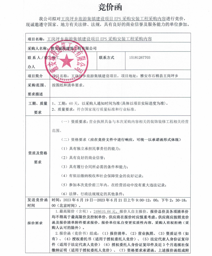 王崗坪鄉(xiāng)旅游集鎮(zhèn)建設(shè)項(xiàng)目EPS采購安裝工程采購內(nèi)容競價公告