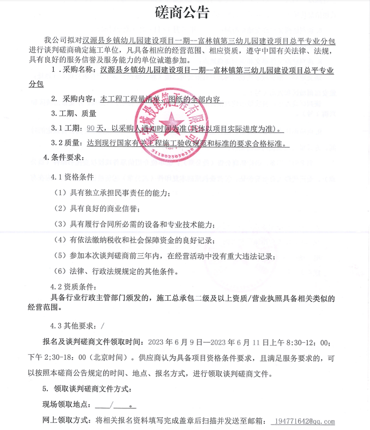 漢源縣鄉(xiāng)鎮(zhèn)幼兒園建設(shè)項(xiàng)目一期--富林鎮(zhèn)第三幼兒園建設(shè)項(xiàng)目總平專業(yè)分包談判磋商公告