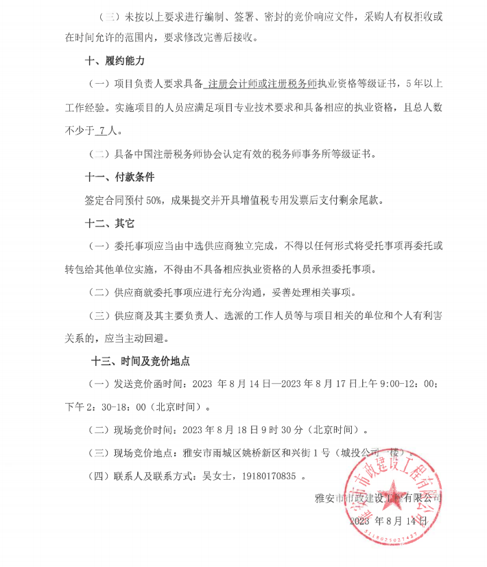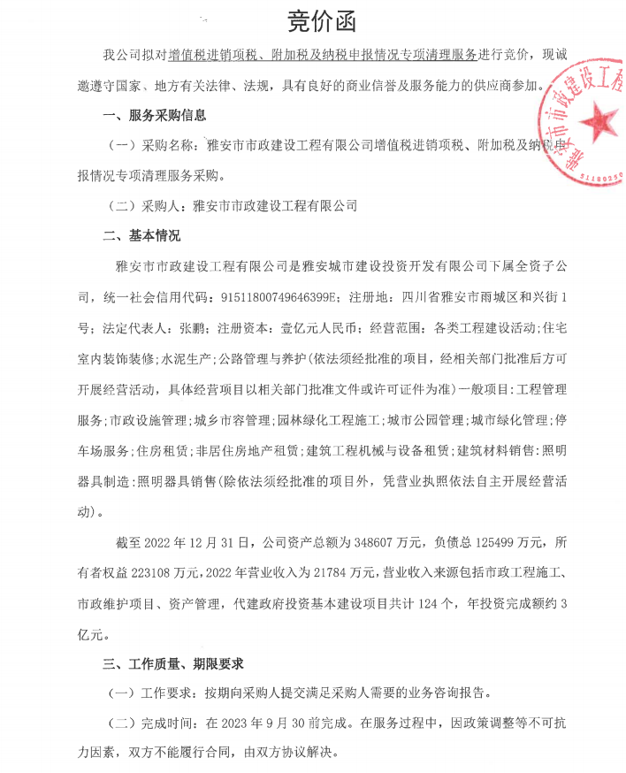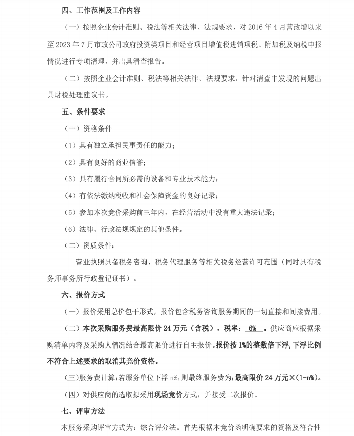 市政公司增值稅清理專項(xiàng)服務(wù)采購需求書