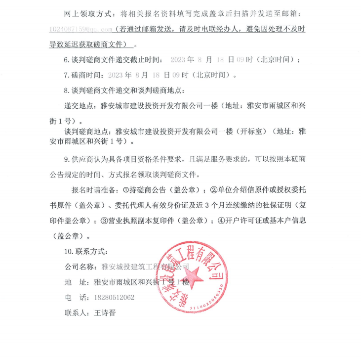 雅安市西康記憶生態(tài)文旅街區(qū)項目一號地塊項目弱電智能化系統(tǒng)談判磋商公告