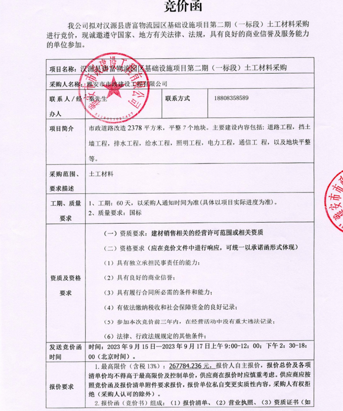 漢源縣唐富物流園區(qū)基礎(chǔ)設施項目第二期(一標段)土工材料采購競價公告