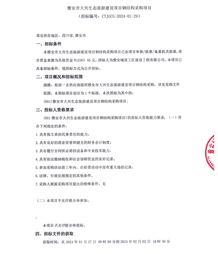 雅安市大興生態(tài)旅游建設(shè)項目鋼結(jié)構(gòu)采購項目公告