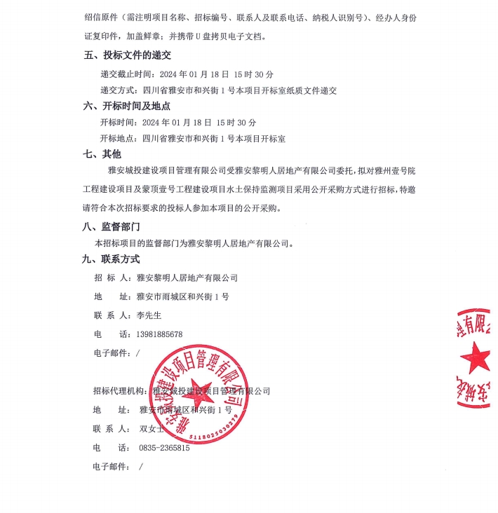 雅州壹號院工程建設(shè)項(xiàng)目及蒙頂壹號工程建設(shè)項(xiàng)目水土保持監(jiān)測項(xiàng)目公告