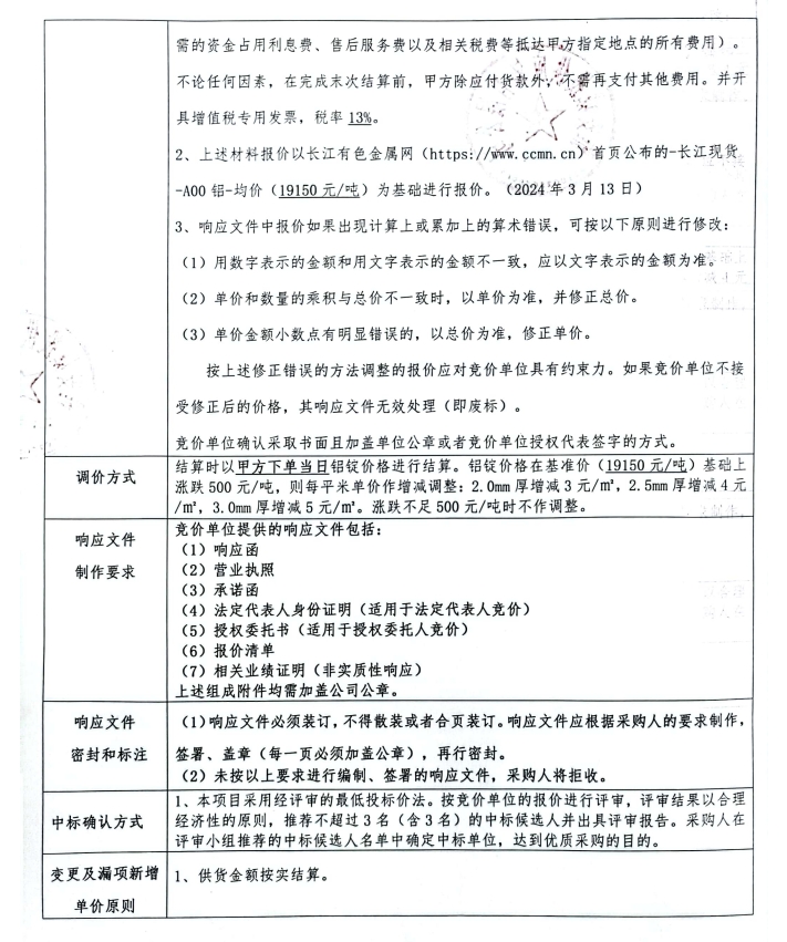雅州壹號院鋁單板材料采購競價公告