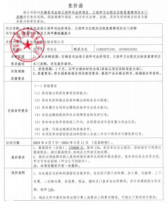 附件1:競價(jià)函-石棉縣司法局王崗坪司法所項(xiàng)目、王崗坪衛(wèi)生院災(zāi)后恢復(fù)重建項(xiàng)目木門材料采購
