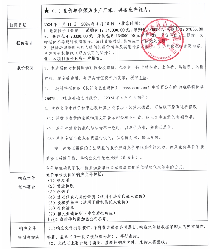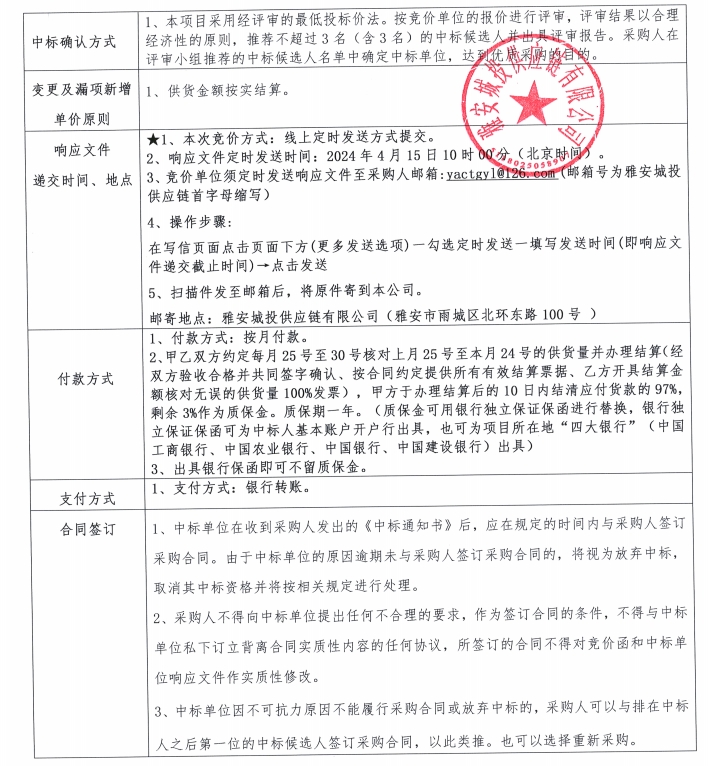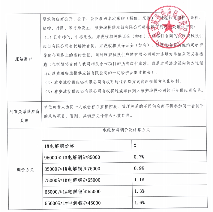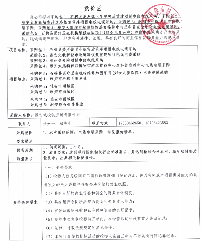 雅安城投供應(yīng)鏈有限公司電線電纜采購競價(jià)公告