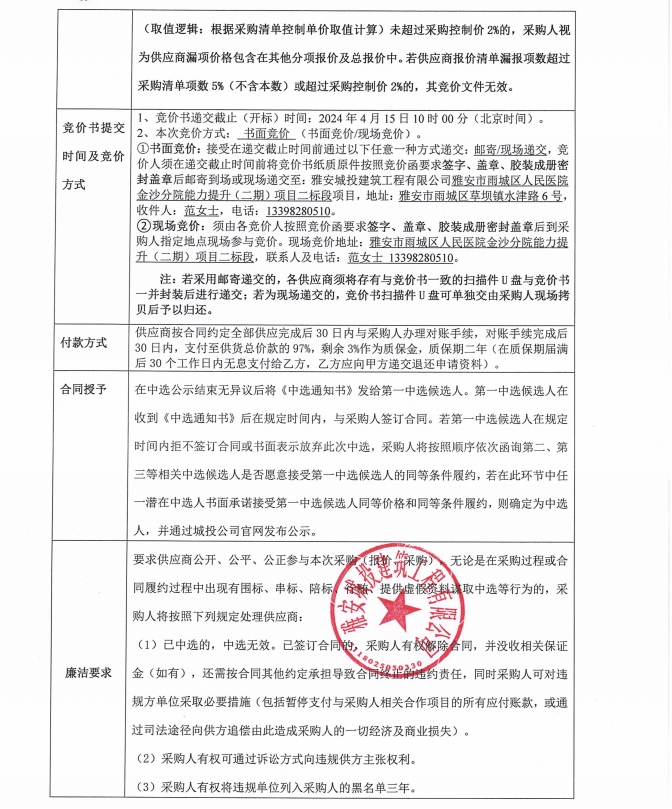 雅安市雨城區(qū)人民醫(yī)院金沙分院能力提升(二期)項目二標段衛(wèi)生間隔斷采購競價公告