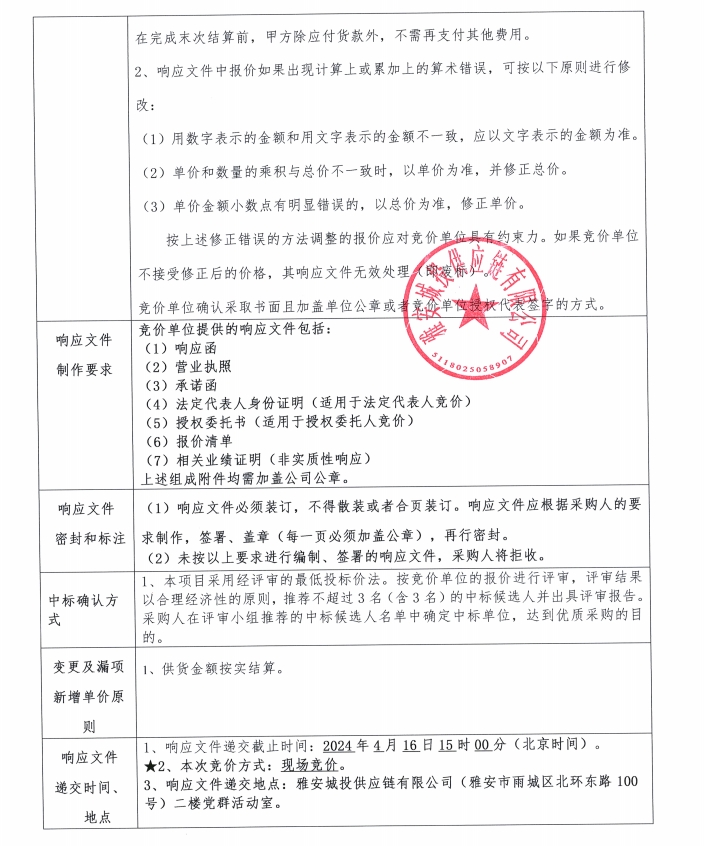 響應(yīng)文件格式(競價)
