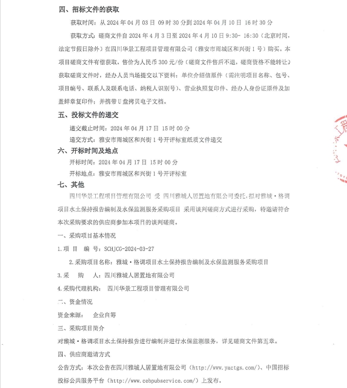 雅城·格調(diào)項目水土保持報告編制及水保監(jiān)測服務(wù)采購項目競爭性磋商公告