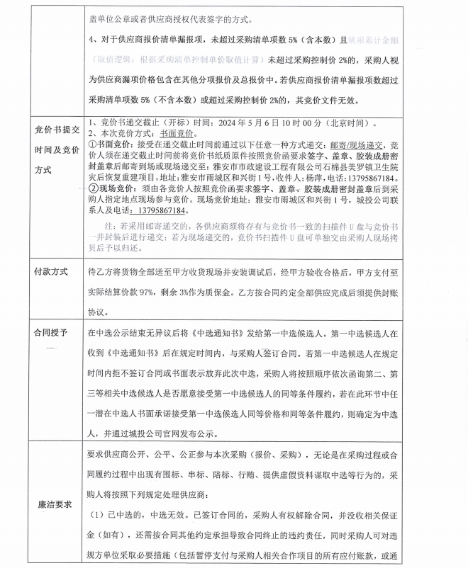 石棉縣美羅鎮(zhèn)衛(wèi)生院災(zāi)后恢復(fù)重建項目消防水箱采購(第二次)競價公告