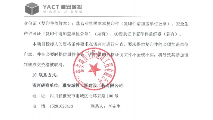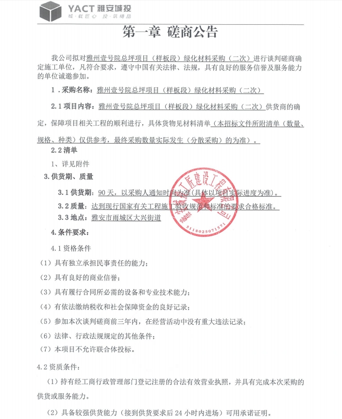 雅州壹號院總坪項目(樣板段)綠化材料采購 (二次)磋商公告