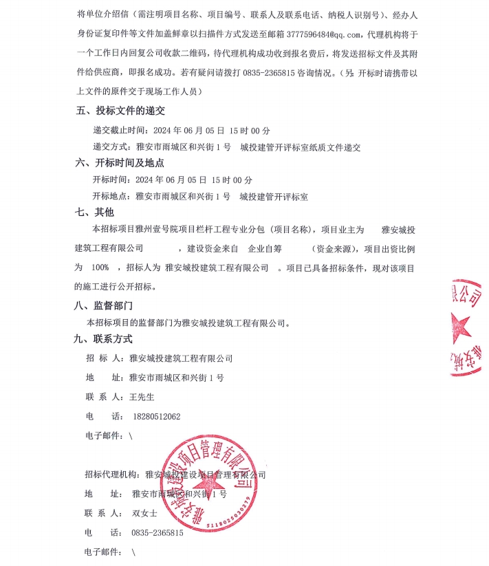雅州壹號(hào)院項(xiàng)目欄桿工程專業(yè)分包采購(gòu)公告