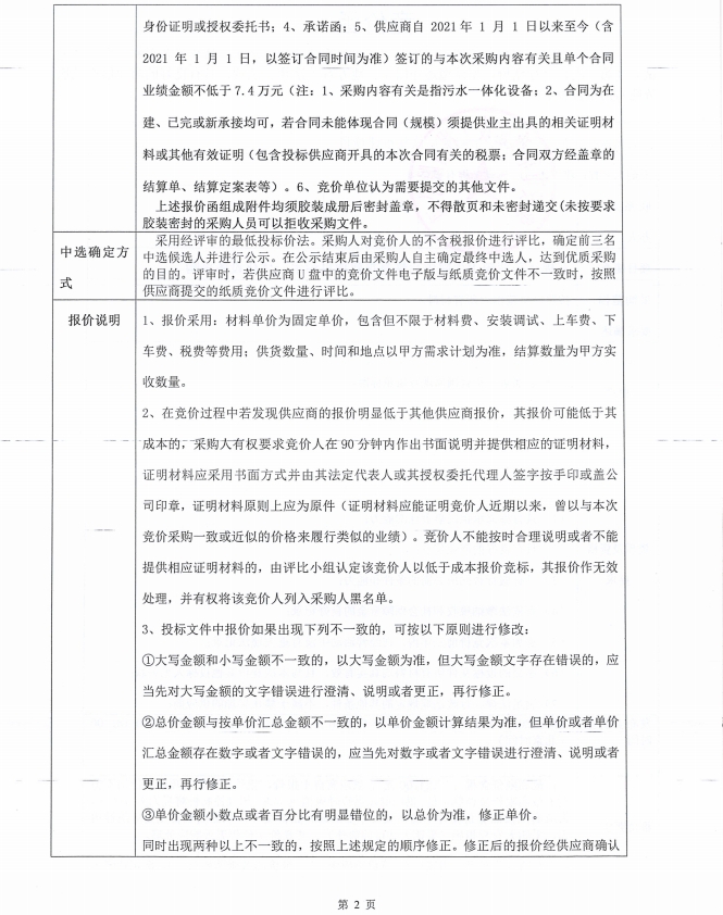 美羅鎮(zhèn)一體化設備競價函