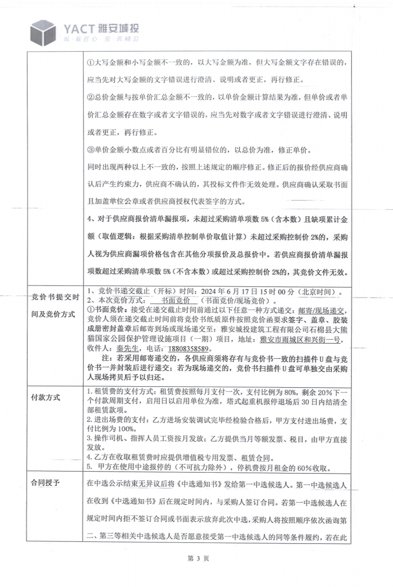 石棉縣大熊貓國家公園保護管理設(shè)施項目(一期)塔機租賃(第二次)競價公告