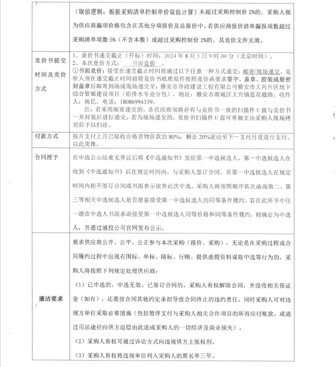 雅安市大興片區(qū)地下綜合管廊建設(shè)項(xiàng)目給排水專業(yè)分包管配件及閘閥材料采購(gòu)競(jìng)價(jià)公告