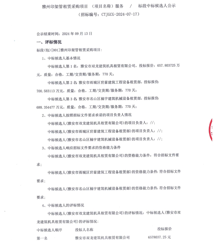 雅州印架管租賃采購(gòu)項(xiàng)目(項(xiàng)目名稱)服務(wù)/標(biāo)段中標(biāo)候選人公示公告
