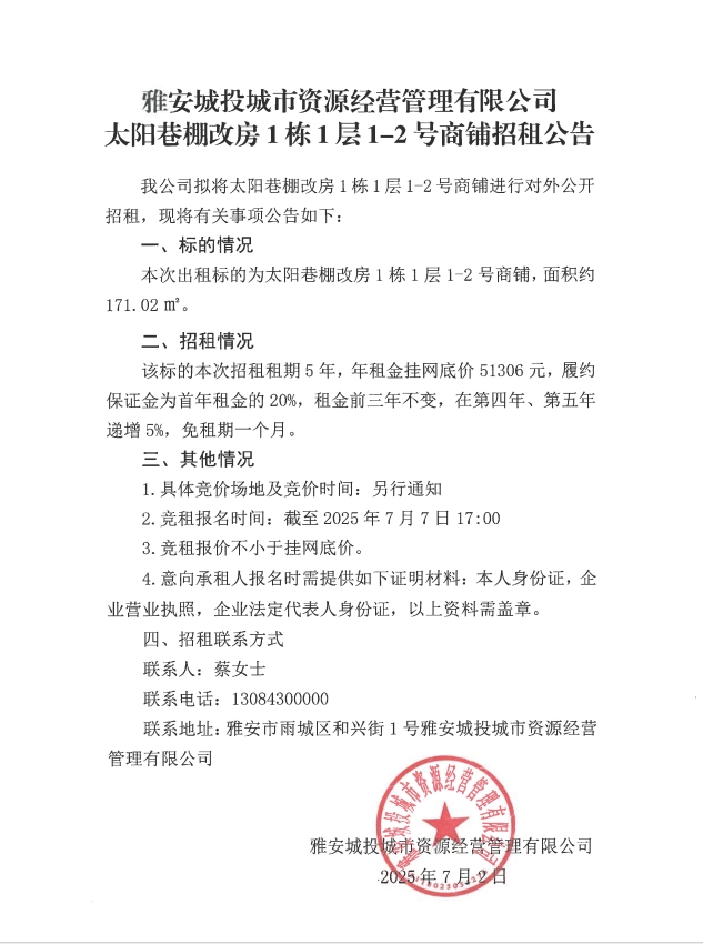 太陽(yáng)巷棚改房1棟1層1-2號(hào)商鋪招租公告