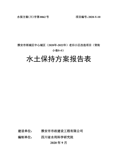 市政公司 雅安市雨城區(qū)中心城區(qū)(2020年-2022年)老舊小區(qū)改造項(xiàng)目(背街小巷(5+5)水土保持方案報(bào)告表