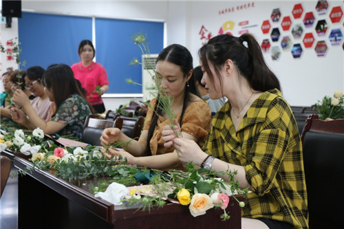 員工們緊盯花藝師邊學(xué)邊練,花枝高低錯(cuò)落、疏密有致、虛實(shí)結(jié)合……,現(xiàn)場(chǎng)氣氛非常活躍,一個(gè)個(gè)插花技巧華麗集合。經(jīng)過(guò)2小時(shí)的精心制作,一束束鮮花逐漸形成,大家看著自己的作品,充滿了成就感和喜悅感。